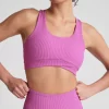 Streamline your routine with our new ribbed active fabric that’s ready to keep up with every move. Offering comfortable support, removable pads, and a unique overlap detail, this racerback bra can easily go from workout class to weekend errands. Pair with the matching legging and let’s do this.
